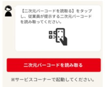 2. 従業員がご提示する二次元バーコードを登録操作されているスマートフォンで読み取っていただくと、本人確認が完了します。